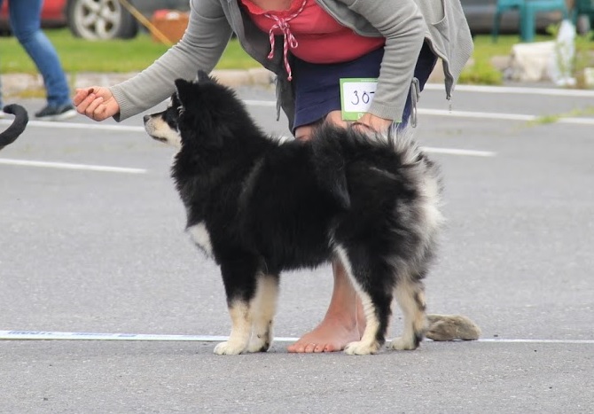 Mätsärillä kävi harjoittelemassa kehässä oloa Luna (Petäjämaan Paapero) äitini kanssa ja hyvin meni. Neitokainen käyttäytyi oikein reippaasti ja sijoittuskin oli BIS6. Otin pari kuvaa myös Lunasta.