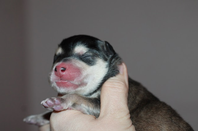 Tälle aamua Heta synnytti. Kahdeksan aikaan aamulla syntyi ensimmäinen ja yhdentoista aikaan viimeinen, saldona 4 poikaa ja 2 tyttöä. Kaikki meni oikein hyvin. Heta tiesi heti mitä pennuille pitää tehdä ja nyt se onnellisena hoitaa pieniään tunnollisesti.